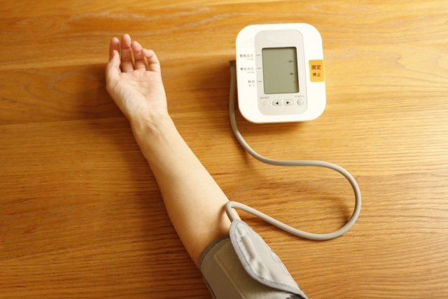 きついシャツ等で腕の上部を締め付けないようにし、血圧計は腕と同じ高さのところにおいて測りましょう。